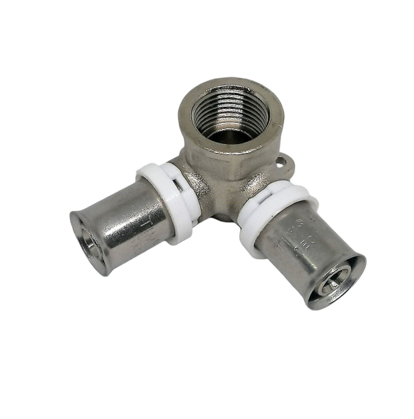 Тройник угловой ПРЕСС 16*1/2"ВР НИКЕЛЬ с креплением (проходная водоразетка) TIM F-ZL160216FN