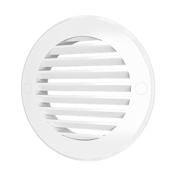 Решетка РК оснащена наклонными жалюзи, скрывающими от глаз вентиляционную шахту. Монтируется с круглыми пластиковыми воздуховодами ВП, соединяется при помощи фланца.