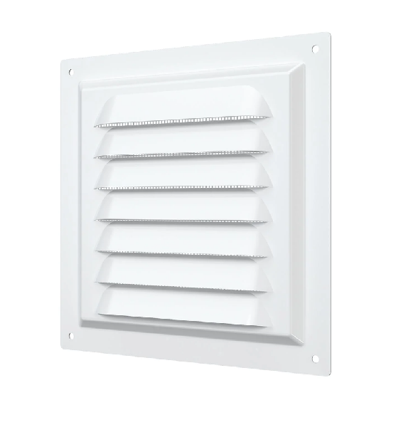 Решетка МЭ изготавливается из оцинкованной стали, которая покрывается полимерной эмалью. Имеет наклонные жалюзи.