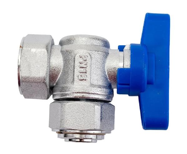 Кран шар. хром, 3/4" накидные гайки бабочка, синий, угловой FS 3099 34BC