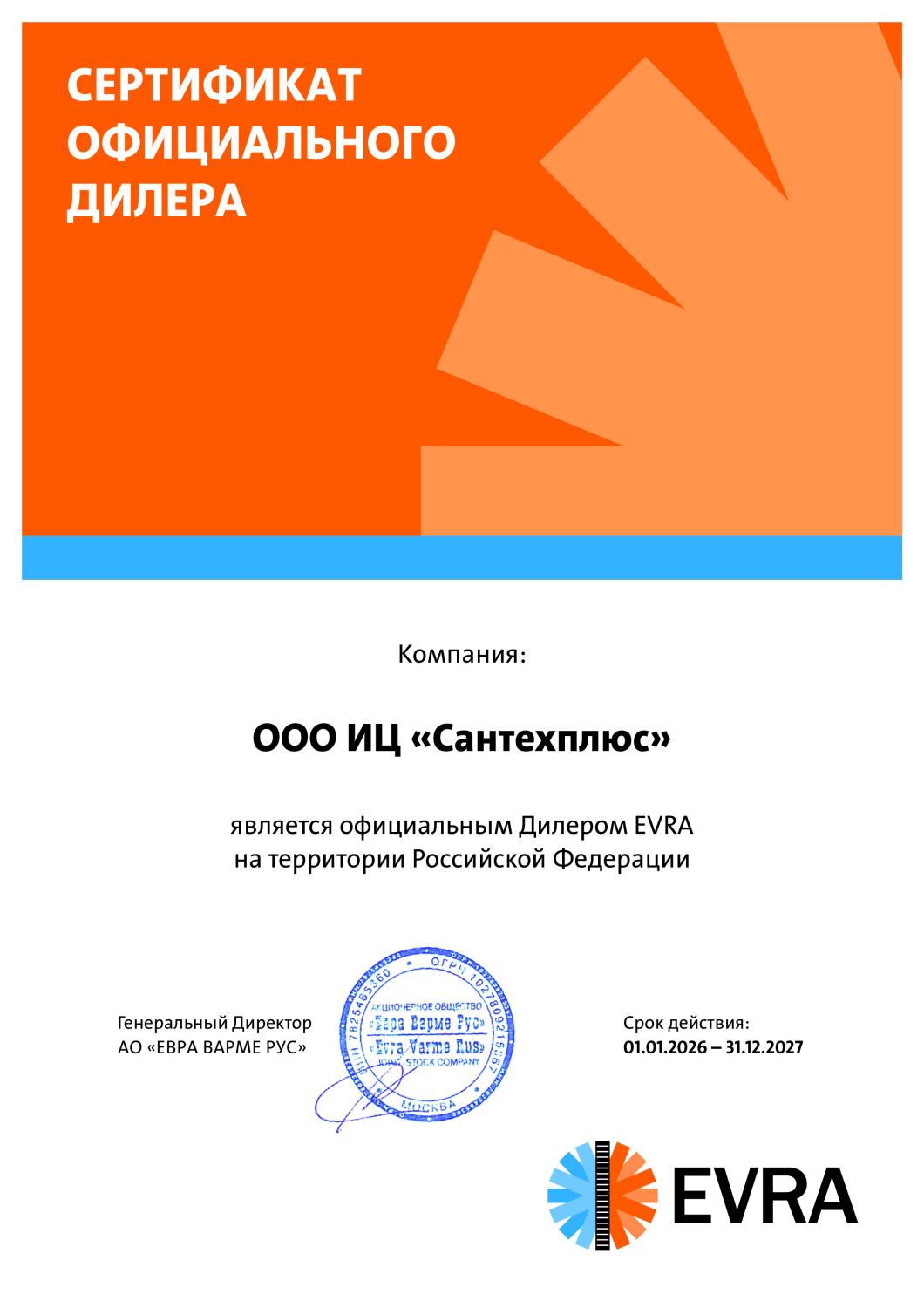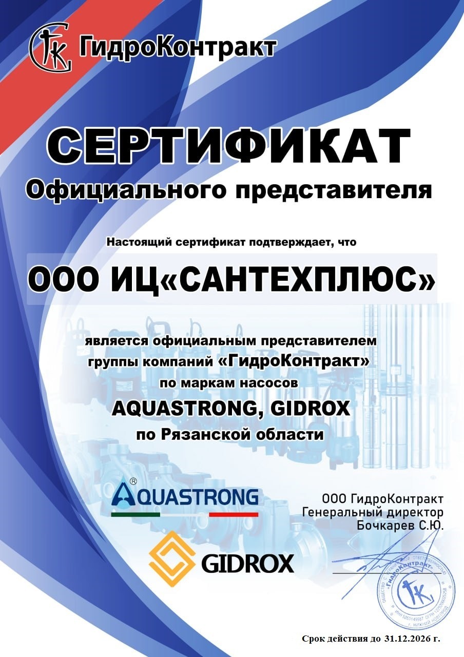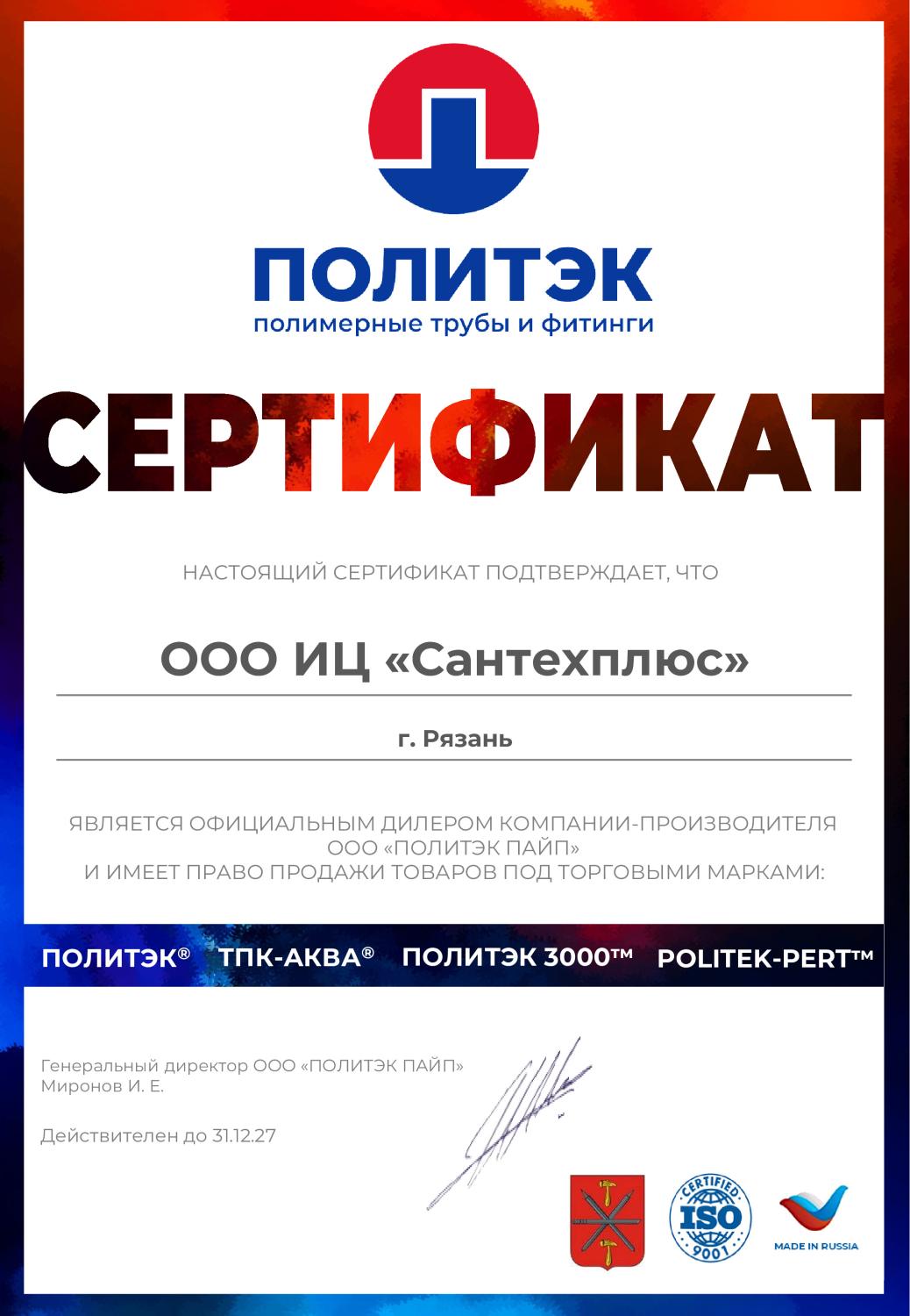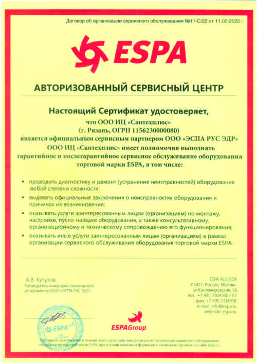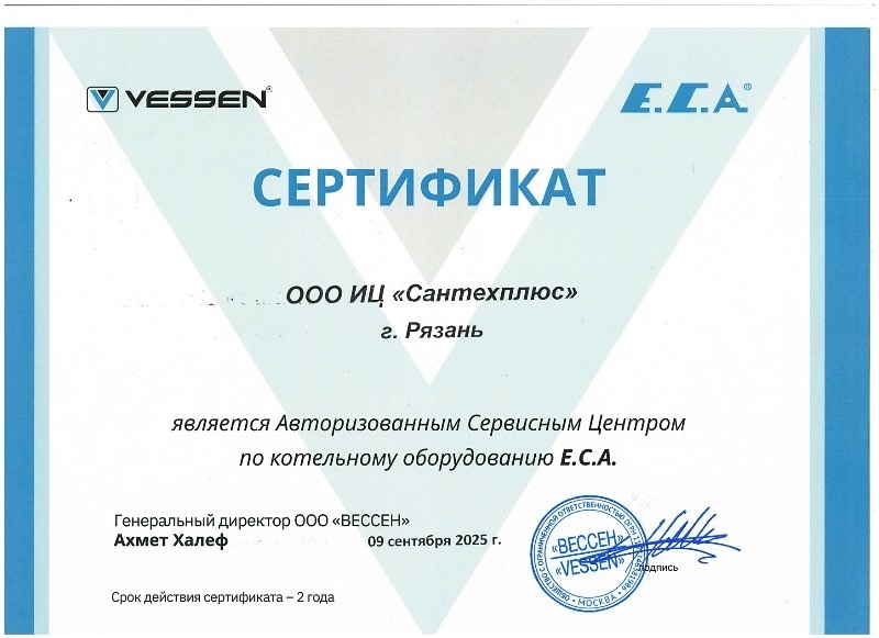 Сертификаты СЦ "Сантехплюс"