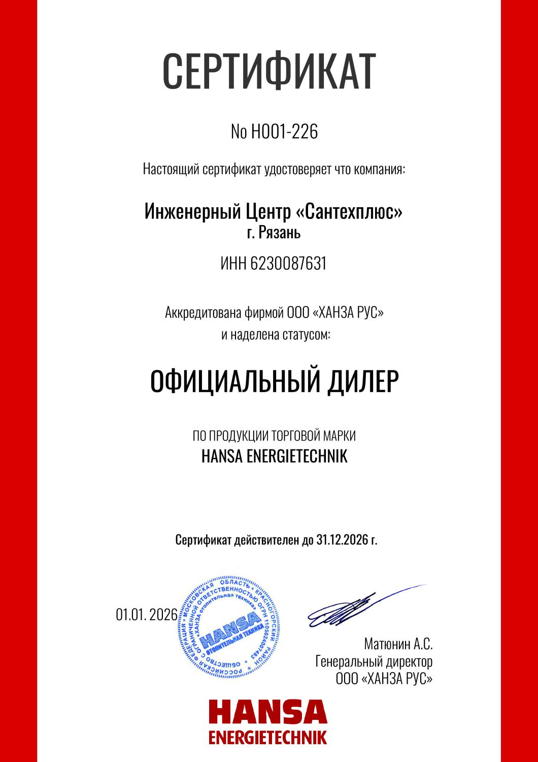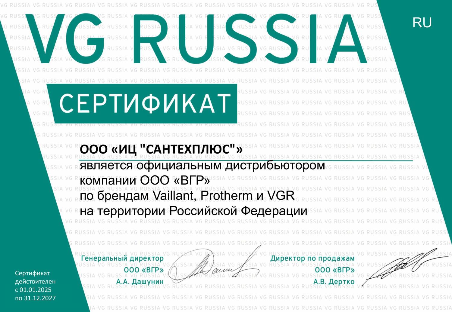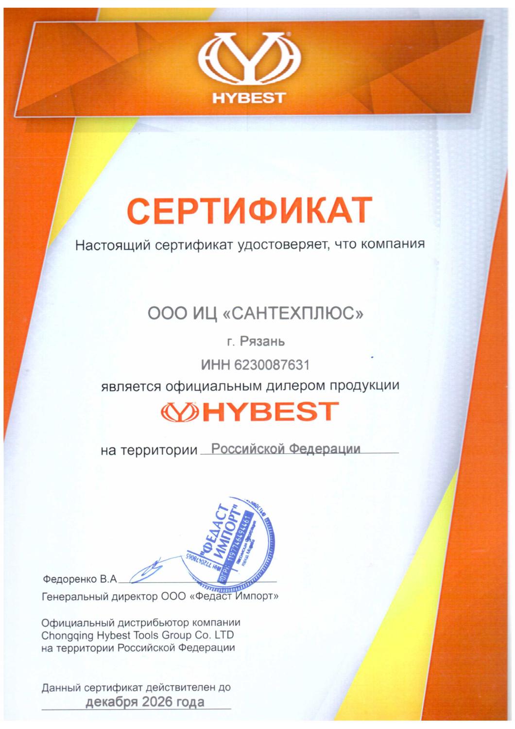 Сертификаты СЦ "Сантехплюс"